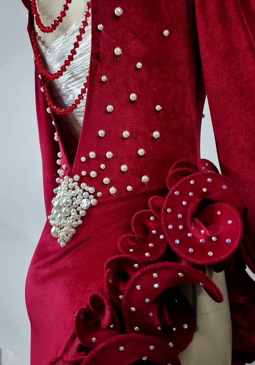 Red Velvet Dress with Pearls