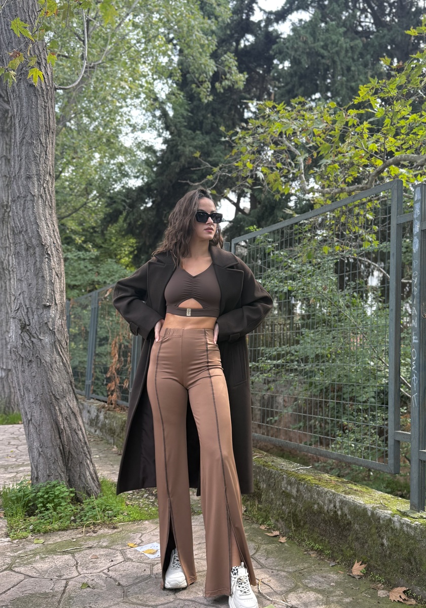 - Άνοιγμα στο κάτω μέρος & διακριτική κεντρική γραμμή που αναδεικνύουν τα πόδια και προσθέτουν ύψος