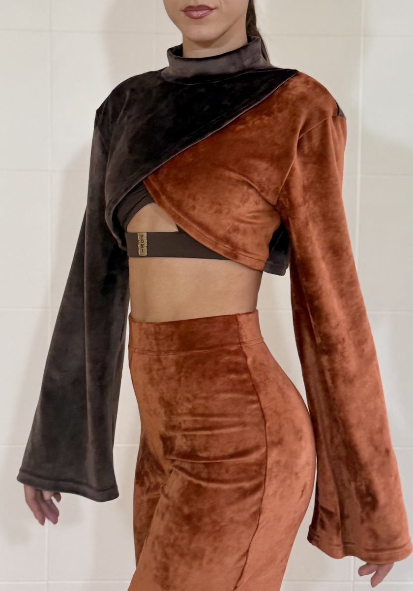 Σετάρετε το το Velvet Aura Dual Bolero (Caramel) με τα Velvet Aura Pants και το αγαπημένο σας Yomi Top από τη συλλογή μας.